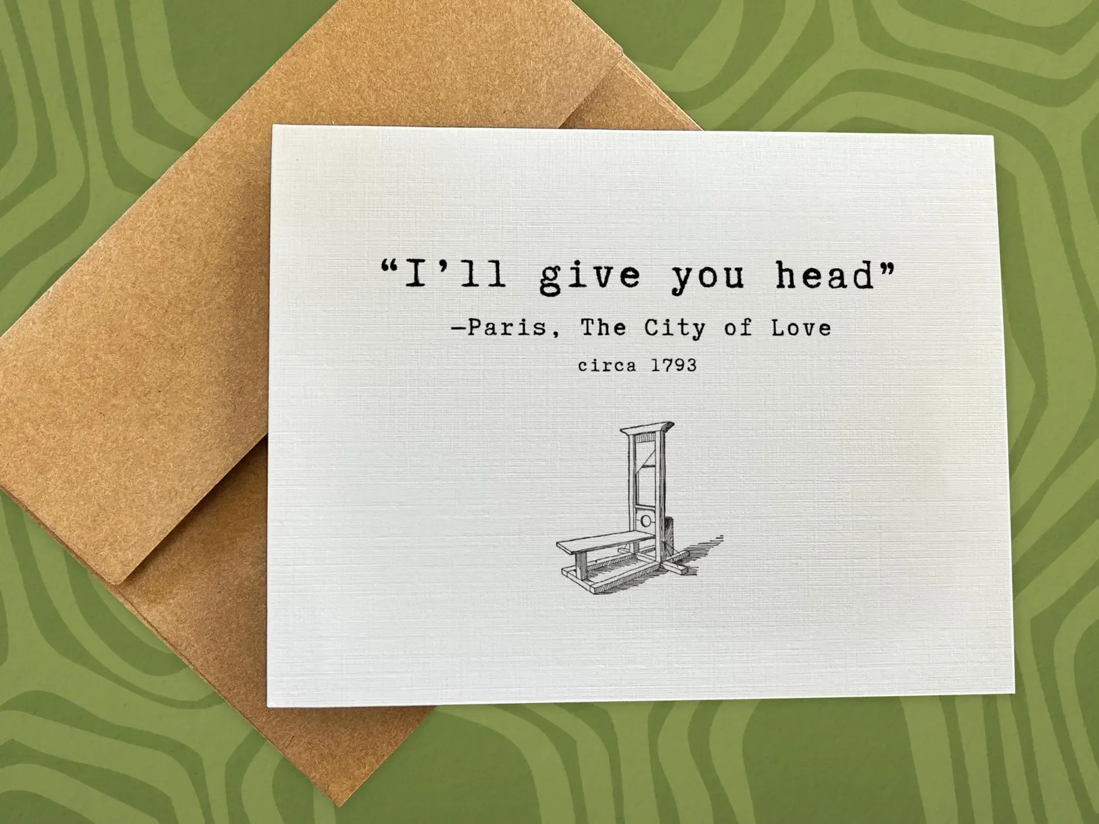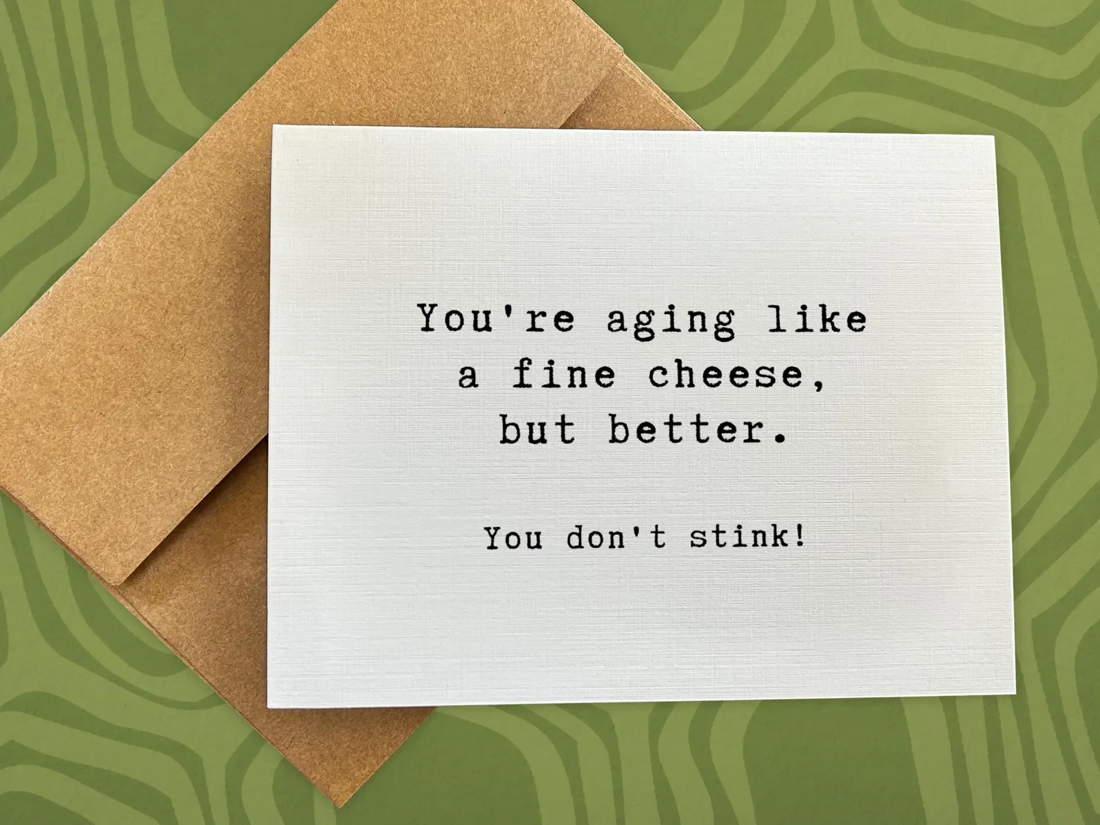 Categories: All mom / dad / family new baby / expecting friendship workplace / retirement congrats / graduation new years christmas / winter jewish holidays thanksgiving / fall love / valentine's day birthday encouragement / sympathy halloween Shop All mom / dad / family new baby / expecting friendship workplace / retirement congrats / graduation new years christmas / winter jewish holidays thanksgiving / fall love / valentine's day birthday encouragement / sympathy halloween the grill master $5.00 i'm glad we share genes, mom $5.00 you're not a regular dad, you're a dog dad $5.00 dog mom day $5.00 professional fanny pack operator $5.00 you're not a regular mom, you're a dog mom $5.00 thanks for always hanging up my art $5.00 world's fastest reflex $5.00 new roommate: no rent. no privacy. $5.00 motherhood: joy, laughter, bodily fluids $5.00 you're expecting! what to expect: a tiny human watching you pee $5.00 wait, you're pregnant? someone's getting action around here $5.00 you had sex everyone knows now $5.00 am i gregnant $5.00 eviction notice: tenant must vacate the premises $5.00 in honor of your creation of an entire human being $5.00 sex-ed class lied $5.00 hope you like poop $5.00 you help me come out of my shell $5.00 best spuds $5.00 you're my best spud $5.00 you're a unicorn $5.00 life without you $5.00 when the universe acts petty $5.00 don't flop $5.00 obtain serotonin $5.00 hang in there $5.00 when you open this card imagine my arms wrapping you in a hug $5.00 don’t feel bad. remember, even jesus farted. $5.00 dam it $5.00 recovering from existing $5.00 resilient $5.00 in honor of what i wish i could say and words never being enough, i humbly offer you this folded piece of paper $5.00 keepin that snoot clean $5.00 our annual bonus $5.00 linkedin birthday $5.00 congrats on another year of unparalleled personal growth $5.00 in honor of your leap into the unknown, i humbly offer you this folded piece of paper $5.00 civilian - 'I pay your salary!' how much they pay - a nickel $5.00 you're leaving? jealous... $5.00 congrats on surviving corporate hell $5.00 in honor of your years of service, i humbly offer you this folded piece of paper $5.00 new hat who dis? $5.00 in honor of your years of hard work, i humbly offer you this folded piece of paper $5.00 in honor of your new square footage, i humbly offer you this folded piece of paper $5.00 brainy graduate $5.00 license to *wee-woo* $5.00 wearing different hats $5.00 less hot than it looks *requires paper work* $5.00 this used to get you detention, now it gets you paid $5.00 cooler by one degree $5.00 you're into feet *professionally* $5.00 doctor on the outside - human on the inside $5.00 get peed on save lives $5.00 welcome to adulthood $5.00 whooooo graduated? $5.00 killer job $5.00 you will eventually get a job $5.00 *cries in student loans* $5.00 congratulations on your mortgage $5.00 guess the new house means your responsible $5.00 life has no syllabus $5.00 dogtor $5.00 registered nurse right now $5.00 in honor of the yearly commemoration of pretending this year will be different $5.00 last year's resolutions $5.00 see you next year $5.00 new year new me $5.00 i heard a ball is dropping at midnight $5.00 the *real* four questions $5.00 party like it's 5785 $5.00 40 years $5.00 in honor of the yearly commemoration of miracles, oil, and excessive snacking $5.00 this *bar* serves grape juice sir $5.00 skull claus $5.00 the holidays fill me with cheese $5.00 holiday spirit activate $5.00 tis the season for dysfunctional families $5.00 this little tree of mine $5.00 naughty nice eggnog $5.00 snowball fight $5.00 this winter never ends... $5.00 someone is watching you $5.00 forgive me father for i am festive $5.00 you better watch out $5.00 don't have a great depression in *your* 30s $5.00 this is a funny card cue laugh track $5.00 you - *gets one year older* insurance companies - *lip bite* $5.00 aging shield $5.00 you're still the life of the party $5.00 old AF $5.00 so, what was antiquity like? $5.00 hot singles in your area? $5.00 you're not getting old, only more mature! $5.00 *existential dread* $5.00 here's to another year of barely holding it together $5.00 extended warranty $5.00 seen worse $5.00 aging is a gift $5.00 not old, just well-seasoned $5.00 antique definition $5.00 blow me, eat my cake $5.00 another year closer to oblivion $5.00 back in my day we just went extinct $5.00 another year older womp womp $5.00 you're ok $5.00 you're good, i guess $5.00 mobile phones in your day $5.00 evolution looks good on you $5.00 aging like a fine cheese $5.00 you don't get *carded* anymore $5.00 four score and seven years ago you were brought forth $5.00 born in the 1900s $5.00 funny 36th birthday greeting $5.00 this is a (fill in the blank) card $5.00 may all of your meetings get canceled $5.00 yearly celebration of our love $5.00 love to stuff your cheeks $5.00 you're a snack $5.00 make my heart explode $5.00 feeling humpy $5.00 i'll show you my hedge $5.00 the other kind of pie day $5.00 cheeky rooster $5.00 to my significant otter $5.00 i love sucking balls $5.00 we're an iconic duo $5.00 i love a good source of vitamin d $5.00 everything reminds me of you $5.00 marie antoinette said 'let them eat cake' $5.00 i choose you $5.00 i'd still love you if you were a worm $5.00 tell me i'm pretty and feed me tacos $5.00 i'll give you head - guillotine $5.00 i'm a bottom feeder $5.00 let's make a fruit salad $5.00 i went from crushing on you... to crushing your face $5.00 would'st thou shaketh my spear $5.00 rose and jack got wet before titanic hit the iceberg $5.00 you touch my sol $5.00 if i were rose, i'd bring up owning a priceless necklace $5.00 i love being filled with your pea-ness $5.00 ready to be sucked $5.00 you have the cutest ass $5.00 i'm *this* horny $5.00 if you were an alien, I'd love if you probed me $5.00 give head get head $5.00 let's linc up $5.00 i picked you this flour $5.00 long & horny $5.00 two potatoes 